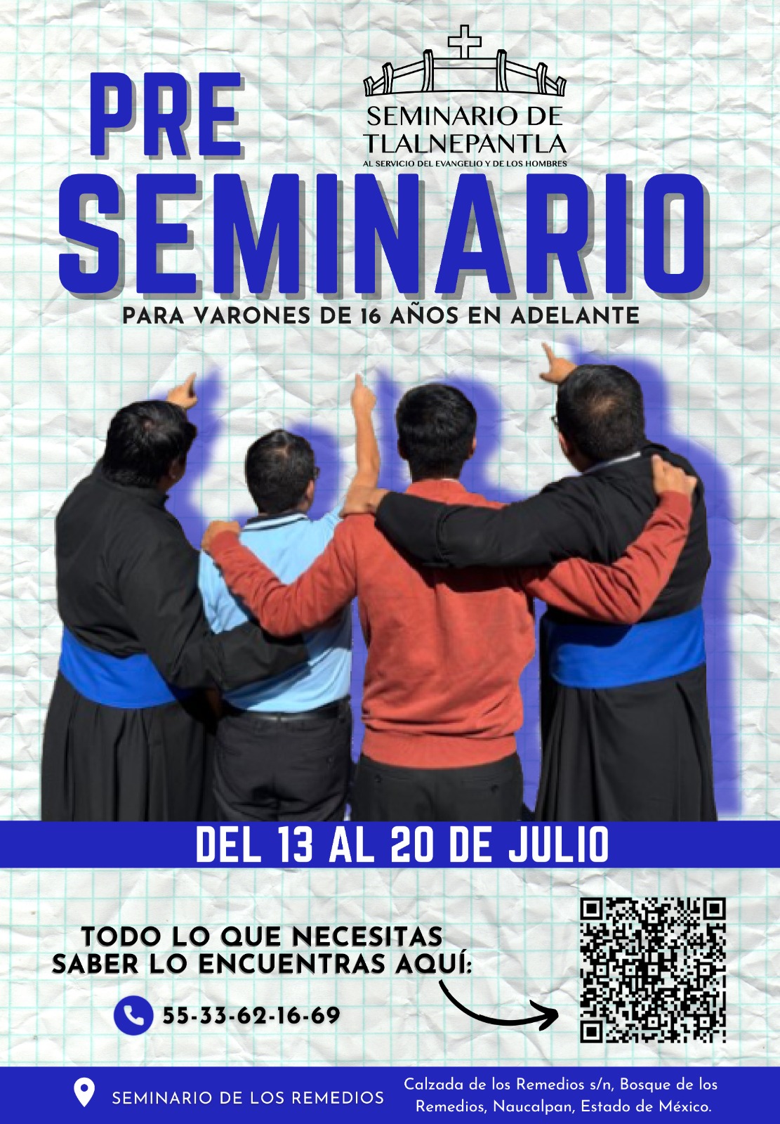 PreSeminario: Es una experiencia usualmente de 2 ó 3 días, en donde algunos sacerdotes y los propios seminaristas te cuentan cómo están viviendo el llamado que Dios les ha hecho, te comparten sus experiencias y te explican cómo pueden ayudarte a identificar si realmente tienes una vocación a la vida sacerdotal.